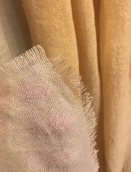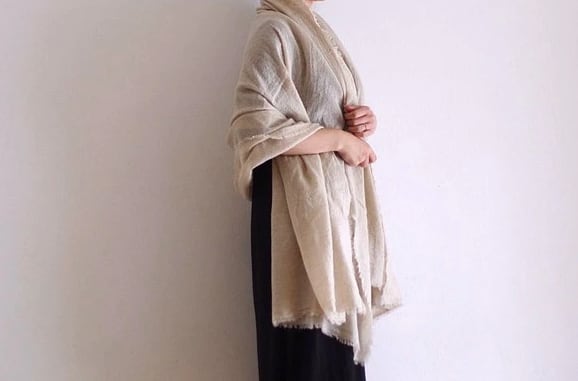 生地自体はふっくらとあたたかなのに、とても軽いので(200グラム)思いっきり大判にして、4辺はフリンジ仕立てにしてみました。