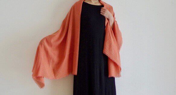ふっくらとあたたかなウールリネンを、茜染めしたストールです。