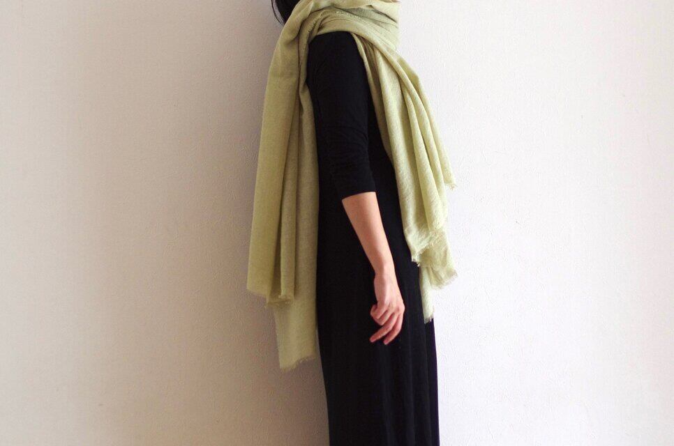 草木染め 大判ウールリネンのストール < Autumn leaves- 蓬 えんじゅ>